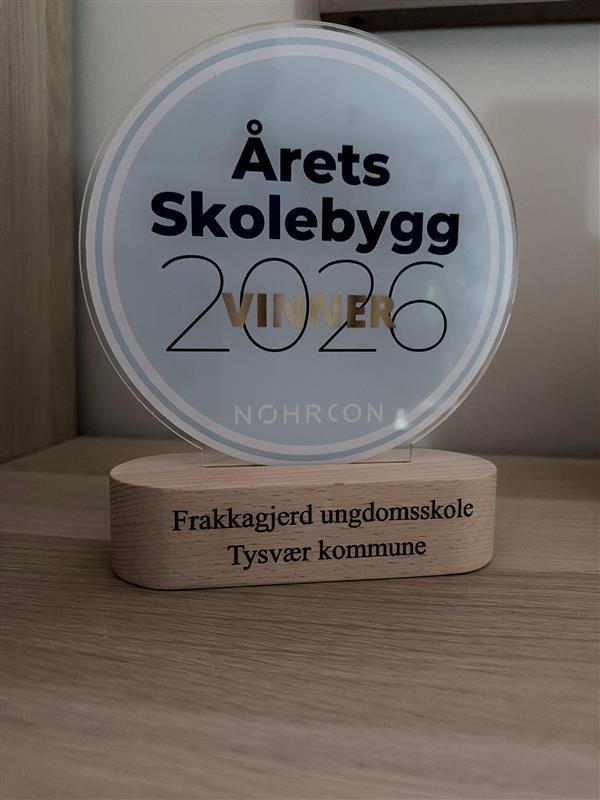 Her er det synlige beviset på at Frakkagjerd ungdomsskole er vinner av Årets skolebygg 2026.