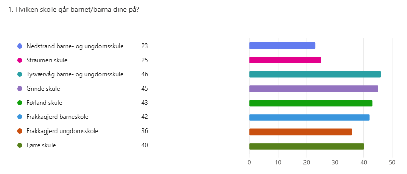 Det kom inn 264 svar, der alle skolekretser var representert. Det var flest med barn i barneskolen som svarte.