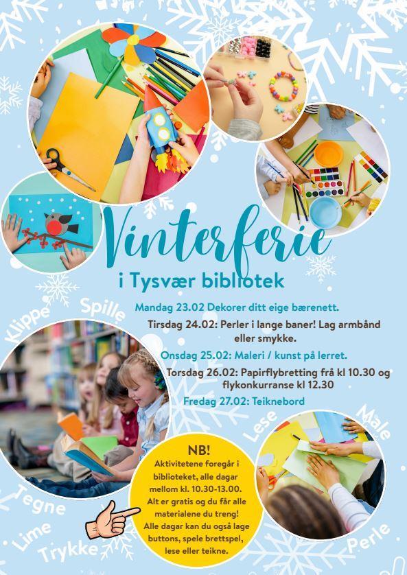 23. -27. februar er det vinterferie i Tysvær bibliotek fra kl. 10.30 - 13.00.Alt er gratis og du får alle materialene du trenger.