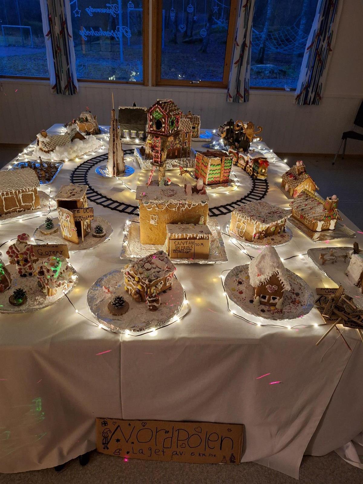 Julemarknaden blei ein fin kveld sjølv om regnet plaska. Peparkakebyen var litt mindre i år, men dei som blei laga var kjempefine. Husa må hentast denne veka.
